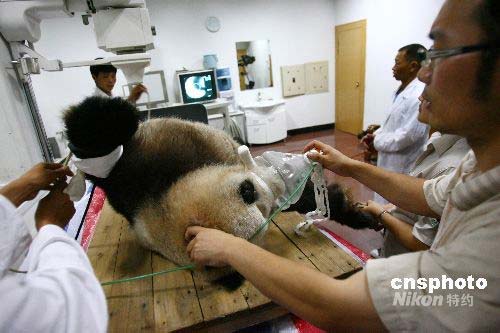 圖:地震災區病號熊貓福州接受體檢(3)