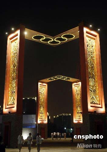 7月25日,北京奧組委奧運村部副部長、奧運村新聞發言人鄧亞萍在今天上午舉行的“奧運村即將開村”新聞發布會上透露:北京奧運村已在2008年7月20日預開村,目前已有46個代表團先遣組約150人入住。奧運村正式開村時間為2008年7月27日,屆時將接待來自205個國家和地區的16000名運動員和隨隊官員。圖為奧運村內夜景。中新社發 杜洋 攝