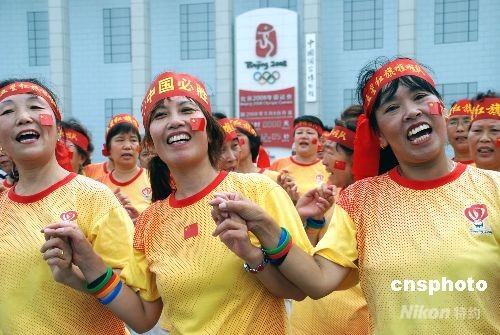 圖:北京群眾拉拉隊天安門為奧運(yùn)加油(2)