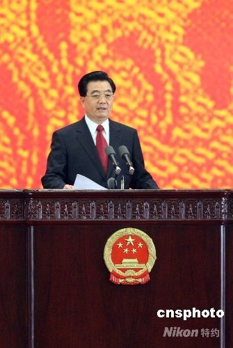 8月8日,中國國家主席胡錦濤在北京人民大會堂宴會廳為出席北京奧運會的貴賓舉行歡迎宴會。圖為胡錦濤在歡迎宴會上致辭。中新社發 廖文靜 攝