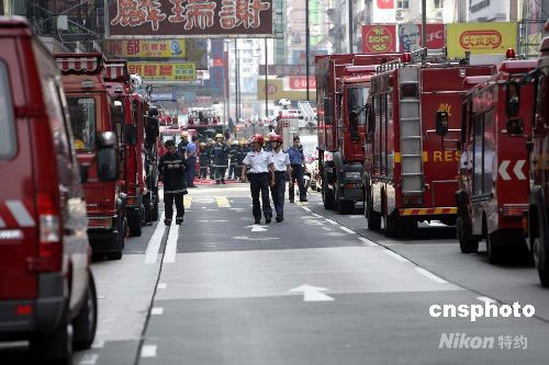 圖:香港旺角五級(jí)大火 四十輛消防車救火
