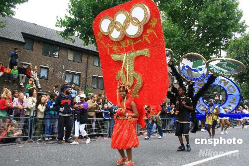 圖:北京奧運(yùn)會徽亮相英國諾丁山狂歡節(jié)