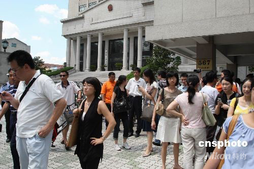 8月26日,上海第二中級法院電子信息牌上公告,轟動滬上的“楊佳襲警案”將在下午一點開庭。眾媒體被謝絕現(xiàn)場旁聽,許多媒體記者在法院門口觀望采訪。今年7月1日,北京籍男子楊佳闖入上海市閘北區(qū)政法辦公大樓,連續(xù)捅傷9名民警和一名保安,并致其中6名警察身亡,楊佳被當場擒獲。中新社發(fā) 潘索菲 攝
