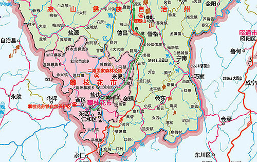 中新網8月30日電 據中國地震臺網消息,2008年8月30日16時30分許,四川省攀枝花市仁和區、四川省涼山彝族自治州會理縣交界處發生里氏6.1級地震(緯度: 26.2,經度: 101.9,震源深度10公里)。圖為此次地震震區周邊地圖。