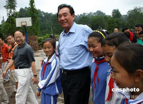 圖:陳云林考察四川地震災(zāi)區(qū)小學(xué)重建情況