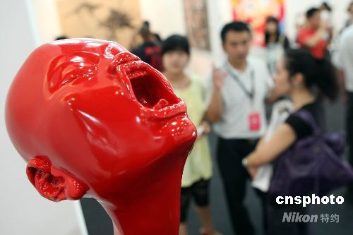 9月10日,2008上海藝術(shù)博覽會開幕。本屆藝博會吸引了來自中國、美國、法國等20個國家的140余家海內(nèi)外優(yōu)秀畫廊前來參展。中新社發(fā) 湯彥俊 攝