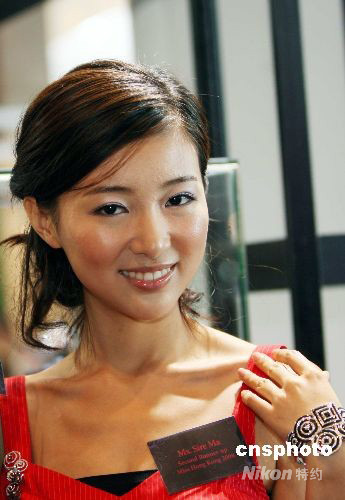 九月十八日,應屆香港小姐季軍馬賽應邀到“香港珠寶鐘表展”上,為香港珠寶制造業廠商主辦的“2008首飾設計比賽”擔任評判。中新社發 洪少葵 攝