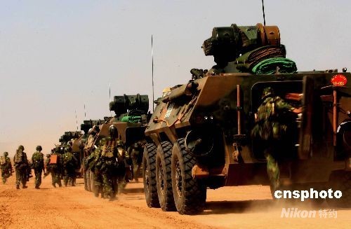 濟南軍區機械化步兵旅火速集結訓練。中新社發 宋吉河 攝