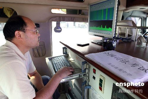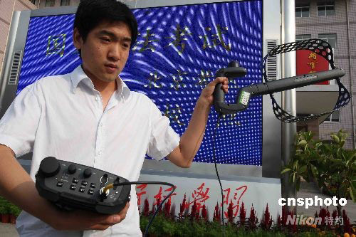 北京市司法局與北京市無線電管理局等按照“人防”與“技防”相結(jié)合,采用新型的技術(shù)設(shè)備--無線耳機探測器和全功能考場信號擾斷儀配備給考點。對疑似利用無線電通訊設(shè)備作弊或與考場外無線電通訊設(shè)備串通作弊的信號進行監(jiān)測,必要時采取技術(shù)手段予以阻斷。對已經(jīng)確認,情況屬實,違反治安管理規(guī)定或涉嫌犯罪的,交由公安機關(guān)依法查處。中新社發(fā) 任海霞 攝