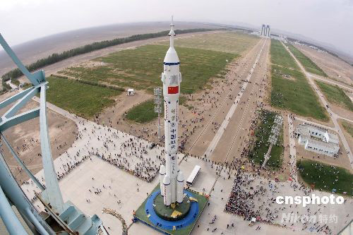 備受矚目的神舟七號載人航天飛行任務(wù)實施在即,目前,神舟七號船、箭、塔組合體已順利垂直轉(zhuǎn)運至中國載人航天發(fā)射場發(fā)射架,整裝待發(fā)。中新社發(fā) 楊志遠(yuǎn) 攝