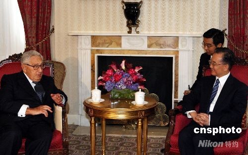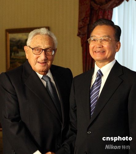 中國總理溫家寶23日在紐約會見美國前國務(wù)卿基辛格。中新社發(fā) 李靜 攝