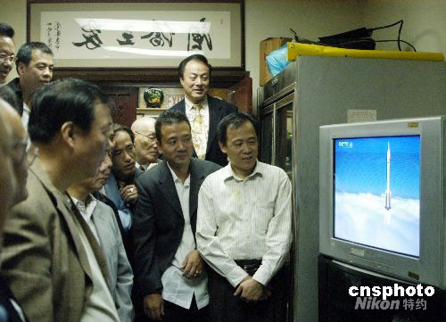 中國神州七號載人飛船發射成功,身在美國的華人華僑歡欣鼓舞,信心大振。紐約福建同鄉會重復播放“神七”升空的電視機前,總是站滿了觀看節目的僑胞。中新社發 魏晞 攝