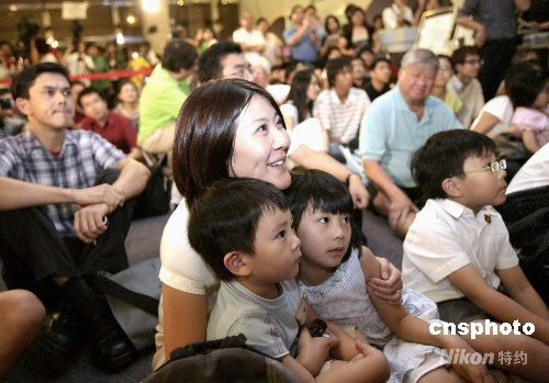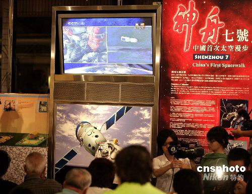 九月二十五日晚,香港市民在太空館觀看“神舟七號(hào)”升空直播。中新社發(fā) 張勤 攝