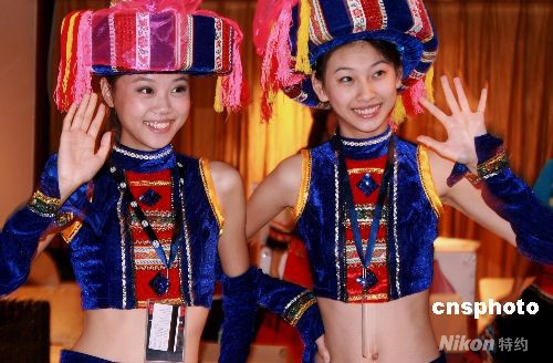 近日,第八屆中國職業模特選拔大賽在廣東惠州舉行,來自20個分賽區的40名選手在金海灣喜來登酒店展示風采,圖為民族服飾表演。中新社發 錢興強 攝