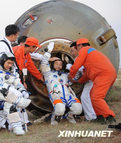 9月28日,神七航天員景海鵬出艙。 新華社記者李剛攝