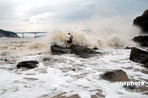 9月28日,受超強(qiáng)臺(tái)風(fēng)“薔薇”影響,浙江溫州市洞頭島海域已是波濤洶涌,海礁上掀起的巨浪高達(dá)10多米。下午2時(shí)許,一對(duì)外地父女在海邊游玩時(shí)不慎被突漲的潮水困在礁石上,隨時(shí)可能被海浪吞噬。正在海邊巡邏的洞頭邊防大隊(duì)官兵發(fā)現(xiàn)險(xiǎn)情后,迅速展開(kāi)緊急營(yíng)救,成功將父女從海浪中安全救上岸。中新社發(fā) 吳水斌 攝