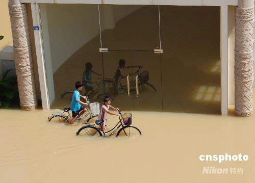 9月29日,廣西南寧市邕寧區(qū)部分街道、社區(qū)、鄉(xiāng)村被洪水淹沒,受今年第14號(hào)臺(tái)風(fēng)“黑格比”影響,邕江(珠江上游)等江河水位暴漲,嚴(yán)重影響了距離南寧市中心城區(qū)20余公里的邕寧區(qū),當(dāng)?shù)?.7萬人受災(zāi),目前尚無人員傷亡。中新社發(fā) 劉萬強(qiáng) 攝