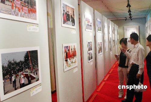 圖為大紅門發展成就圖片展吸引參觀者。中新社發 錢興強 攝