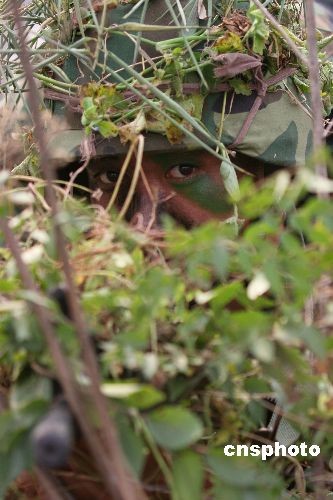 10月19日,濟(jì)南軍區(qū)偵察兵進(jìn)行比武考核,偵察隊(duì)員們攀山越嶺行軍50公里,主要完成了橫越山澗、戰(zhàn)場(chǎng)救護(hù)、破襲戰(zhàn)斗三項(xiàng)課目考核,優(yōu)秀率90%。動(dòng)態(tài)考核結(jié)束后將進(jìn)行總結(jié)表彰,評(píng)出軍區(qū)偵察兵精武標(biāo)兵。偵察隊(duì)員負(fù)戰(zhàn)斗裝具60米山澗。最好成績(jī)38秒。中新社發(fā) 崔成俊 攝