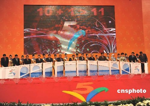 10月22日上午,第五屆中國—東盟博覽會在廣西南寧市開幕。本屆博覽會展位設置了3300個。東盟10國使用的展位數達1100多個,創歷史新高。中新社發 蔣雪林 攝