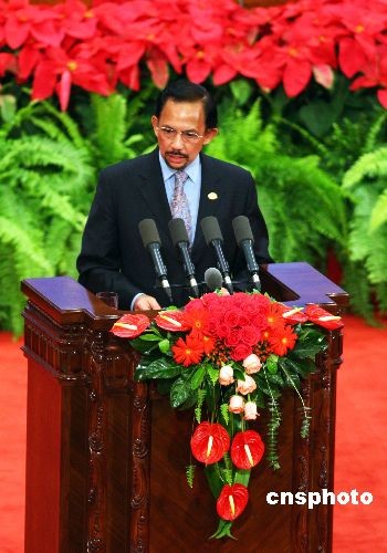文萊蘇丹哈桑納爾在開幕式上講話。中新社發 廖文靜 攝
