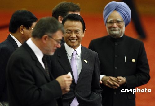 日本首相麻生太郎出席會議。中新社發 盛佳鵬 攝