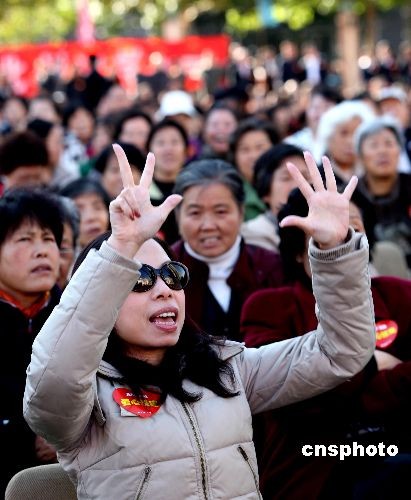 十月二十七日,北京怡海社區一位居民出資八千元買下拍賣的名人字畫,拍賣所得款項用于援建在地震中毀滅的北川中學。中新社發 史利 攝