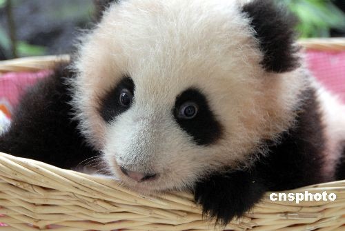 圖為雙胞胎大熊貓的老二——安安(雄性)。