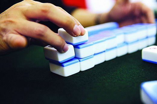 郭安迪演示麻將中的換牌技巧“螞蟻上樹”。秦樓 攝