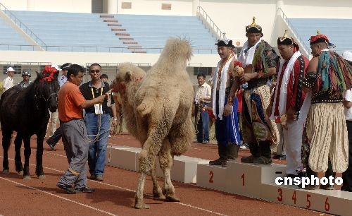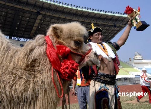 內蒙古選手獲得冠軍并獎勵駱駝一頭。中新社發 王東明 攝