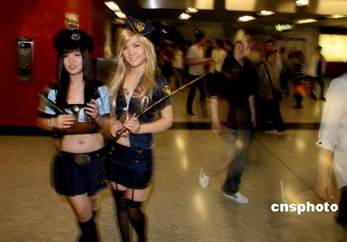 香港地鐵里歡度“萬圣節(jié)”的女孩。中新社發(fā) 武仲林 攝