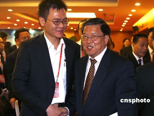 11月4日,“2008年海外華裔青年杰出人士華夏行”活動在北京開幕,來自27個國家和地區的近130位代表與會。博鰲亞洲論壇秘書長龍永圖在在開幕式上做精彩演講,就中國經濟發展等問題和華裔代表互動。中新社發 杜洋 攝