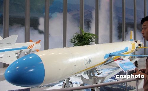 圖為由中國航天科工集團公司研制的C602導彈首次亮相珠海航展,也是該型導彈第一次公開露面。C602是新型遠程反艦導彈,具有射程遠、命中精度高、突防能力強、毀傷威力大、使用靈活、生存能力強等特點,可裝載于機動車輛或水面艦船。中新社發 孫自法 攝