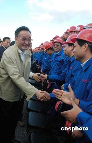 當地時間五日下午,正在阿爾及利亞進行正式友好訪問的中國全國人大常委會委員長吳邦國視察了由中信集團和中國鐵建聯合體承建的東西高速公路項目工地,看望了在那里工作的工程技術人員,要求確保工程質量,做出信譽、創出品牌,把東西高速公路項目建設成世界一流工程。中新社發 孫宇挺 攝