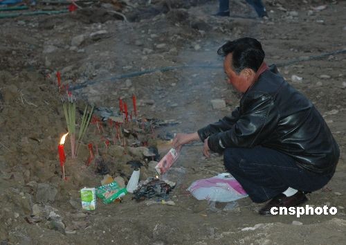 在四川雅江縣務工的楊先生,每月都會到北川中學的廢墟前祭奠在“512”大地震遇難的女兒。圖為11月21日,楊先生星夜兼程從雅江趕赴北川,為17歲的女兒燒去思念。中新社發 肖龍聯 攝