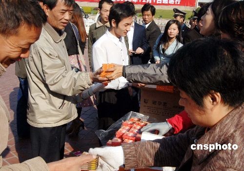 十二月一日,福建省福州市有關(guān)部門在福州聯(lián)合舉行主題為“遏制艾滋、履行承諾”的大型宣傳活動(dòng)。圖為衛(wèi)生部門向民眾發(fā)放安全套。中新社發(fā) 劉可耕 攝