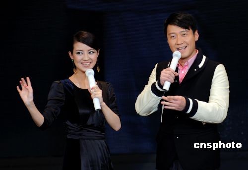 12月2日晚,陳凱歌執導的電影《梅蘭芳》在北京中影懷柔影視基地舉行首映禮,黎明跟主持人調侃時大秀蘭花指。黎明在劇中扮演梅蘭芳。中新社發 廖攀 攝