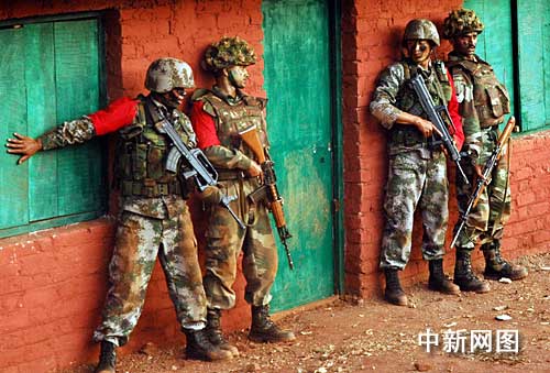 正在印度貝爾高姆舉行的“攜手—二00八”中印陸軍反恐聯合訓練十一日進入第三階段。中新社記者 孫宇挺 攝