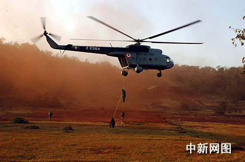 正在印度貝爾高姆舉行的“攜手—二00八”中印陸軍反恐聯合訓練十一日進入第三階段。中新社記者 孫宇挺 攝