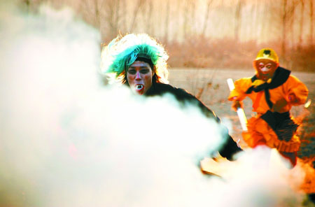 “沙僧”很敬業(yè) 洪海,31歲,雷人表現:練牽馬,裝扮怪異嚇驚馬。
