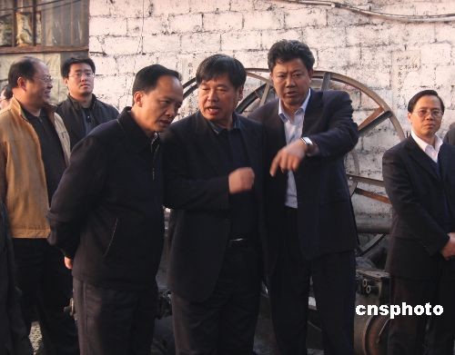 國家煤監局副局長付建華(左二)在湖南省漣源市伏口鎮掛子巖煤礦指揮了解和救援工作。