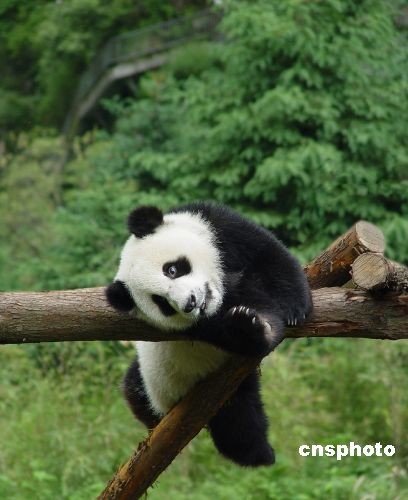 2005年5月27日拍攝的圓圓,爬上樹枝蕩秋千。中新社發 衡毅 攝