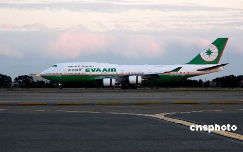 臺灣長榮航空運送大陸贈臺大熊貓“團團”、“圓圓”的專機,在晚霞的映襯下平穩順利降落在臺灣桃園機場。