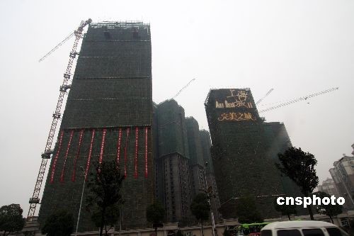發(fā)生建筑施工升降機掛籃墜落事故的長沙市井灣子韶山南路643號湖南東方紅建設集團上海城19棟項目部外景。中新社發(fā) 郭國權 攝