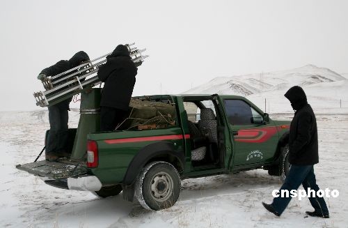 12月27日,新疆哈密人工增雪工作人員在調試人工增雪火箭彈發射架。中新社發 蔡增樂 攝