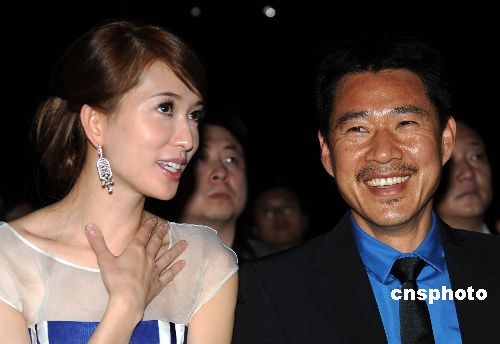 在片中飾演曹操與小喬的張豐毅、林志玲出席發布會愉快交流。