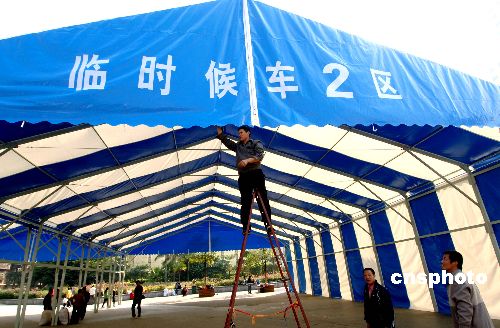 圖:福州火車站搭建臨時候車區迎春運