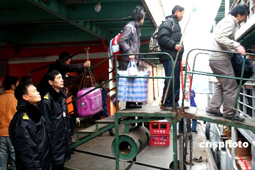 2009年1月8日,返鄉農民工乘船進川。從湖北宜昌港調度部門獲悉,三峽春運返鄉農民工高潮已提前到來,7日農民工進川約6000余人,創今年春運返鄉農民工首個高峰。中新社發 望作信 攝