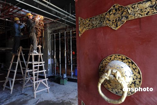 一月初,西藏拉薩布達(dá)拉宮珍寶館內(nèi)施工人員正在緊張的施工建設(shè),該工程將于四月中旬竣工。中新社發(fā) 廖攀 攝