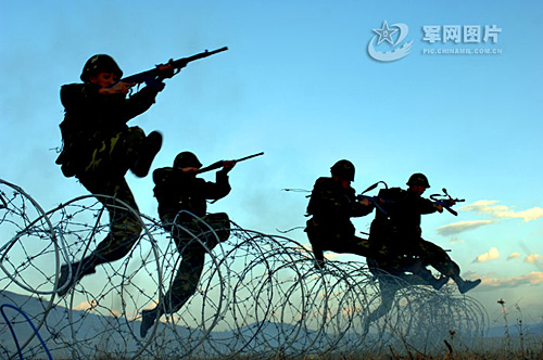圖為官兵們正穿越障礙,向“敵”發起攻擊。鄧忠開 攝
